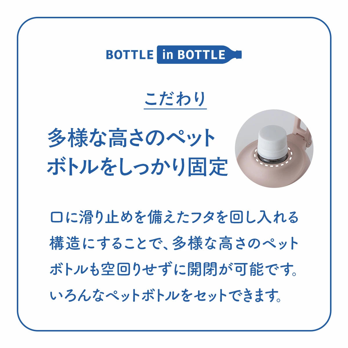 エラストマー付きでキャップを回す際にペットボトルをしっかり固定。