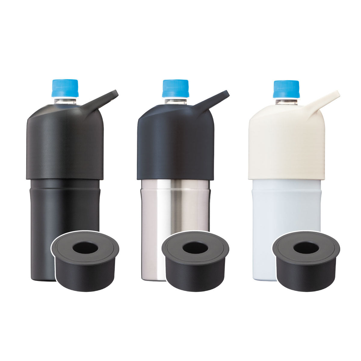 600mL~700mL対応モデルのほか、売れ筋のボトルの約90%にフィットする500mL~650mL用、ホット用ミニサイズの300mL~500mL用を展開。セットできるペットボトルなら保冷・保温どちらにも使用可能です。豊富なバリエーションから利用シーンに合わせてお選びいただけます。