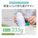 本体はわずか235gと軽量スリムなので重さが気にならずバッグの中でもかさばりません。また、ふたには丈夫なステンレス製のハンドルがついているため外出時の持ち運びにも便利です。ハンドルは折りたたみ式になっており、使用しないときはコンパクトにすることができます。