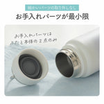 パーツ数はフタ・本体の2点のみと最小限なので洗浄時の手間がぐっと減ります。また、口径は47mmとワイドな設計でスポンジブラシや氷もラクラク入るのも嬉しいポイント。スポーツドリンクにも対応しているため、夏のお出かけや運動時にもぴったりです。