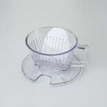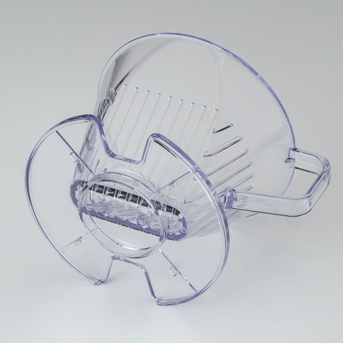 本製品は、軽くて扱いやすい樹脂製で、形状はシンプルな台形タイプ。底の2つの抽出穴はヘキサゴンカット&勾配によりお湯の流れをサポートし、スムーズに抽出できる設計です。