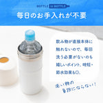 ペットボトルを入れ替えるだけのシンプルな構造は、飲み物が直接本体に触れないので日々のお手入れも簡単です。入れ替えのたびに洗浄する必要がなく、飲み終わったらコンビニや自販機で購入した新しいペットボトルをすぐににセットして保冷(保温)できます。1日に何本もペットボトル飲料を飲むようなときにとても便利です。