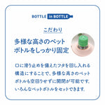 BOTTLE IN BOTTLE(ボトルインボトル)シリーズ専用のスペーサーを使用することで使用できるペットボトルの幅が広がります。使い方はホルダーのカバーを外し、スペーサーを本体の底に入れるだけ。600mL~700mL対応ホルダーに使用した場合は背の低い500mLのペットボトルが入れられるようになります。