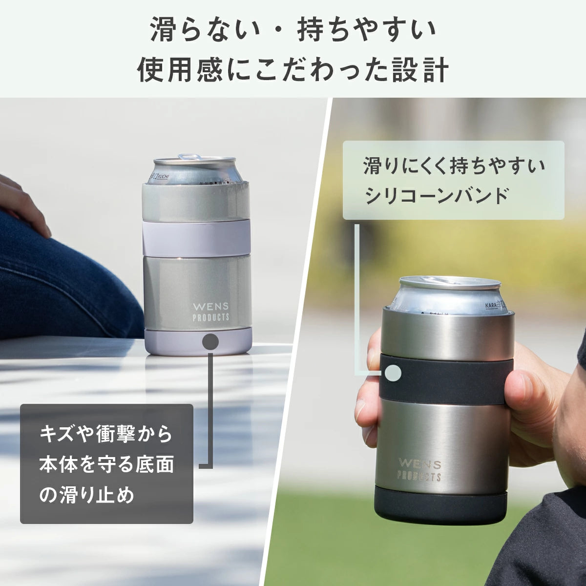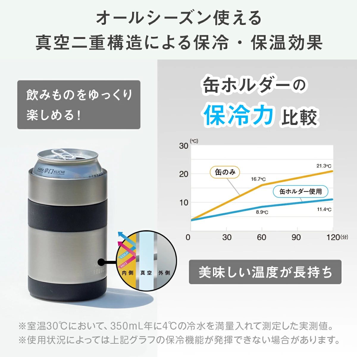 ・保冷性の高い真空断熱2重構造のステンレス缶ホルダー