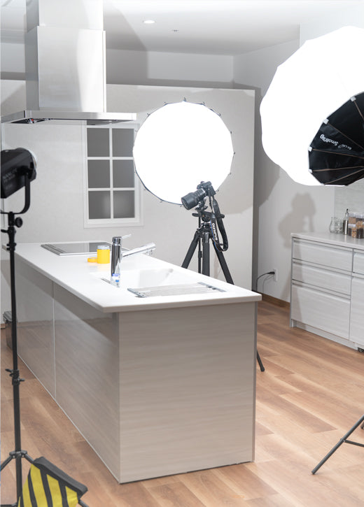 食洗機付きのシステムキッチンを完備。IHコンロで調理風景も撮影が可能。