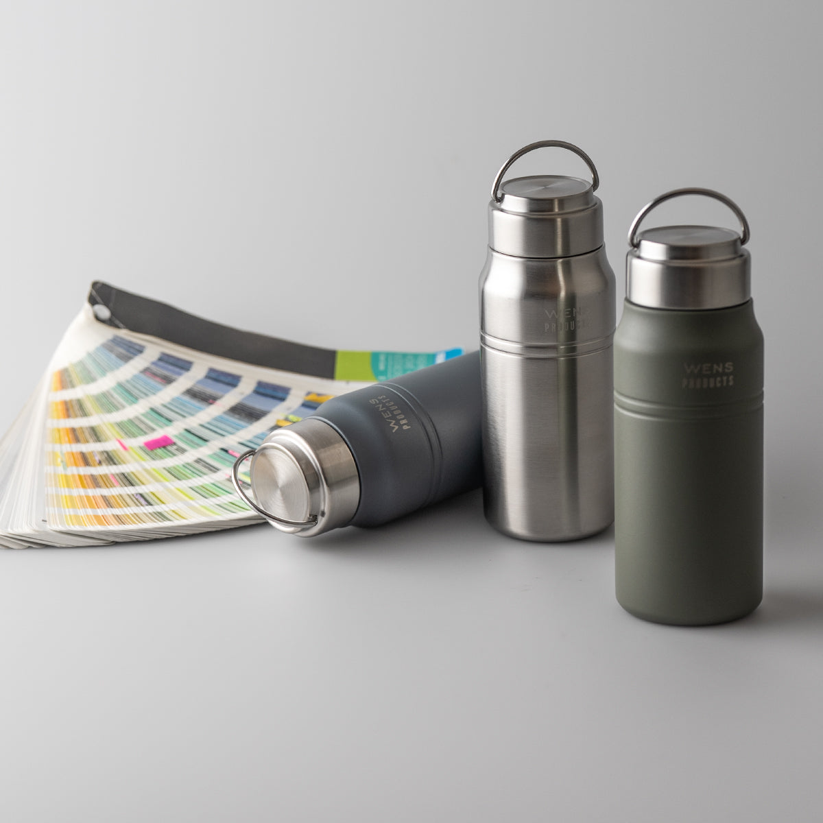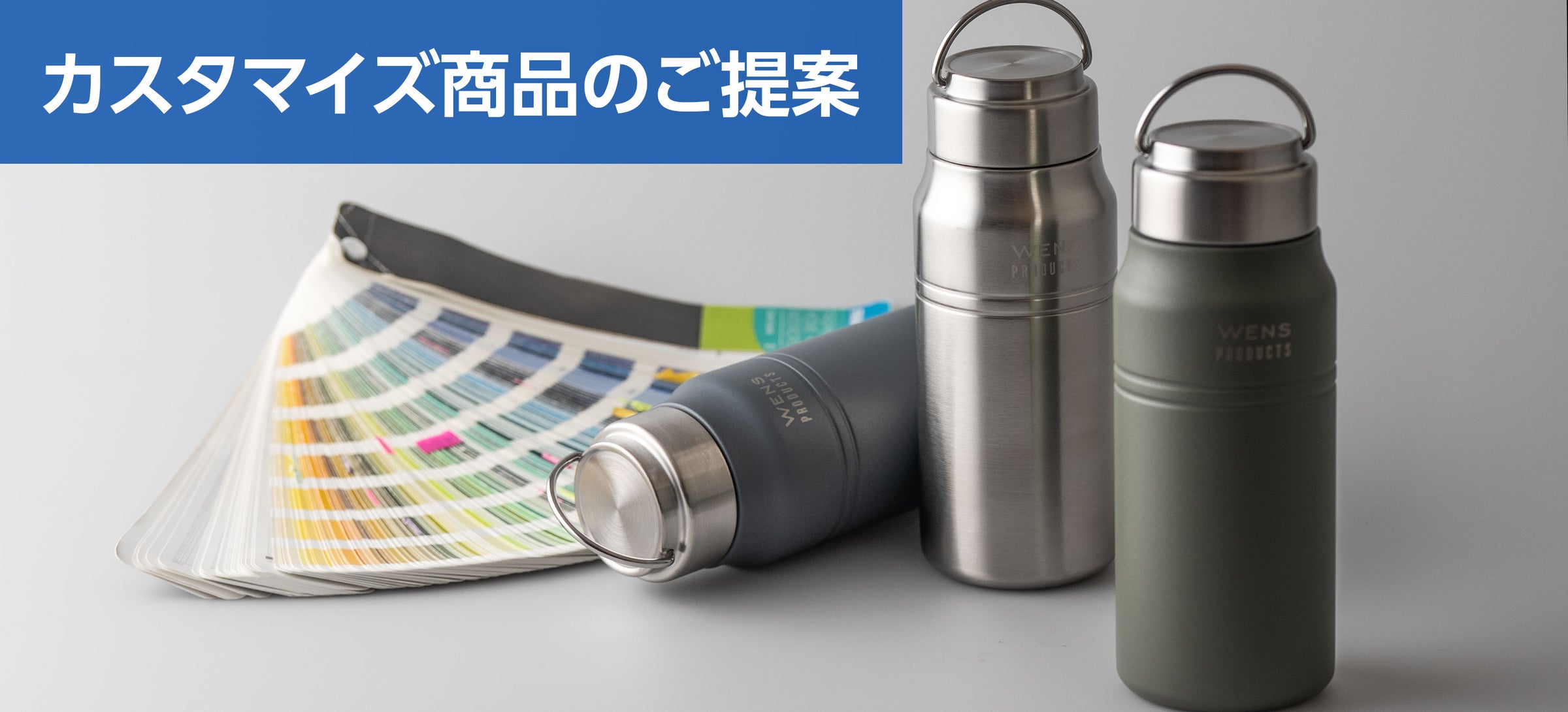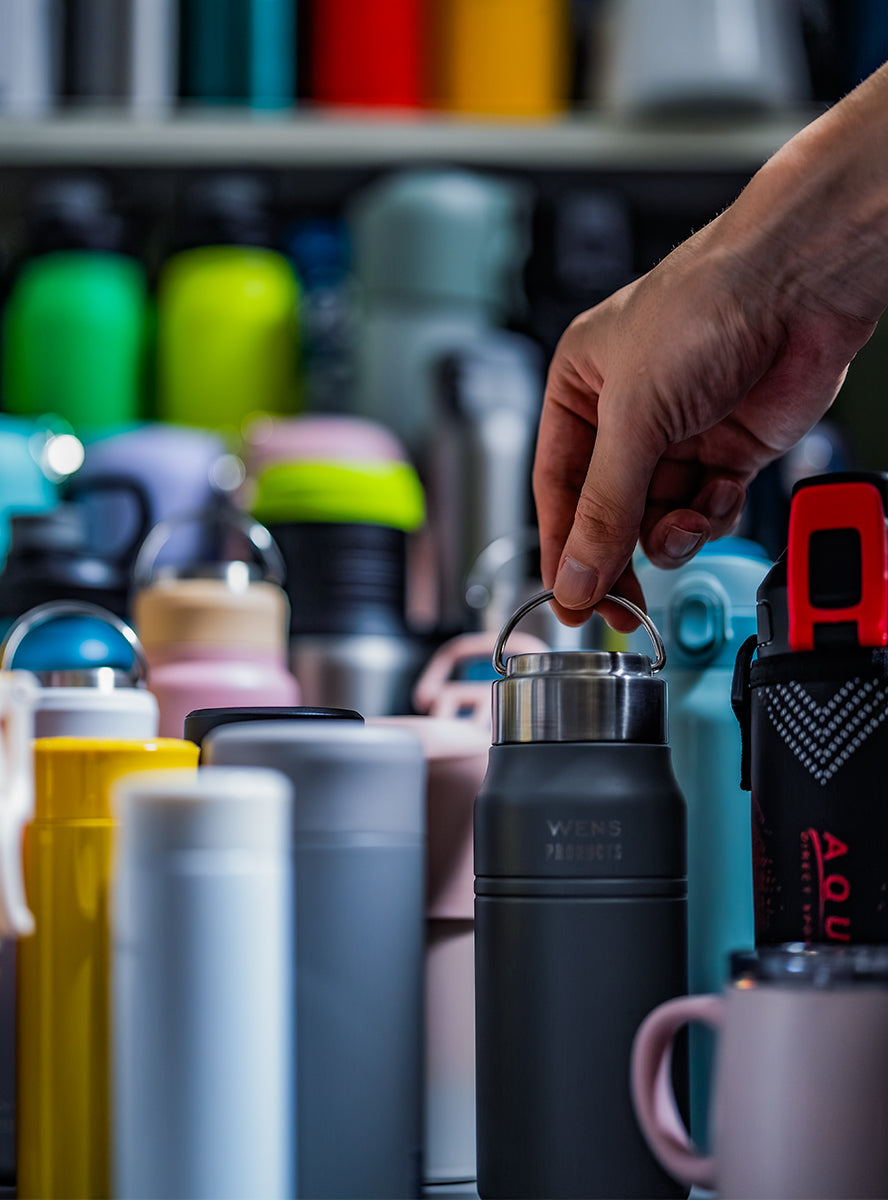当社が保有する金型はステンレスボトル業界でも圧倒的な種類を誇ります。その型を使いボトル本体のカラーや印刷デザインの変更など、お客様のご要望に応じて柔軟に対応可能です。既存金型を活用したコストパフォーマンスの高いカスタム提案も得意としています。