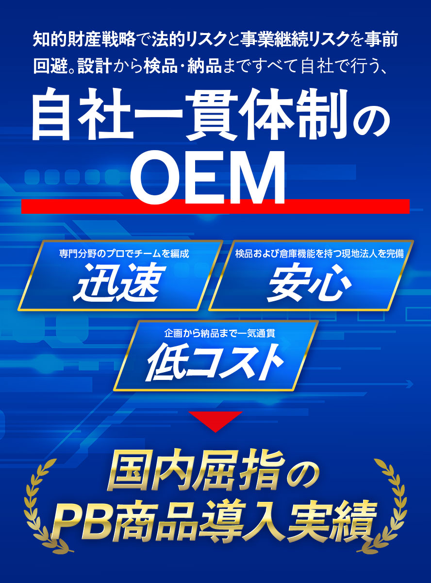 OEMの開発するために専門性の高いスタッフチームが存在します。プロダクトデザイナー・グラフィックデザイナー・品質検査管理の多数のスタッフで対応させていただきます。完全オリジナルの場合はプロダクトデザインからプロダクトデザイナーが設計いたします。カスタム対応の場合はカラーイメージやパッケージデザインイメージなど、社内のグラフィックデザイナーが作成したビジュアル提案も可能です。