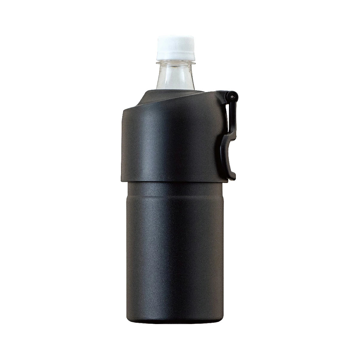 使い方はペットボトルをセットするだけ、飲み終わったら空になったペットボトルを取り出すだけと、とてもシンプル。ペットボトル飲料を最後まで美味しい温度で楽しめる保冷(保温)機能に加え、ジュースや炭酸飲料、スポーツドリンクにお茶など、気分に合わせて2本目、3本目とペットボトル飲料を入れ替えできる手軽さが魅力です。
