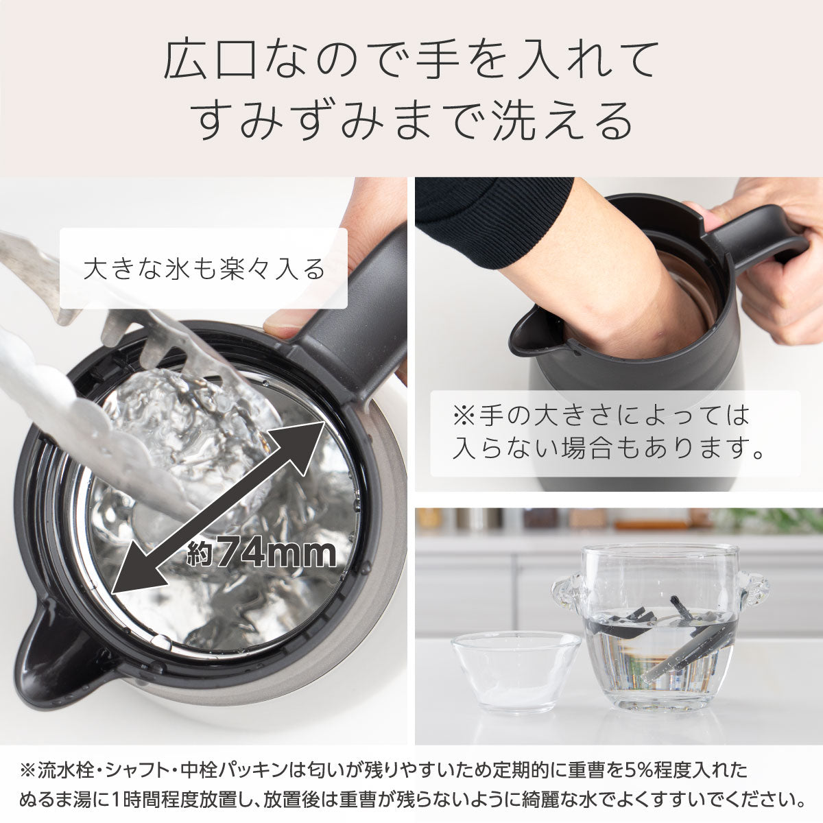 *実容量とは、中栓(ふた)までの全容量です。ご使用の際は取扱説明書をご確認のうえ、適切な量を入れてご使用ください。