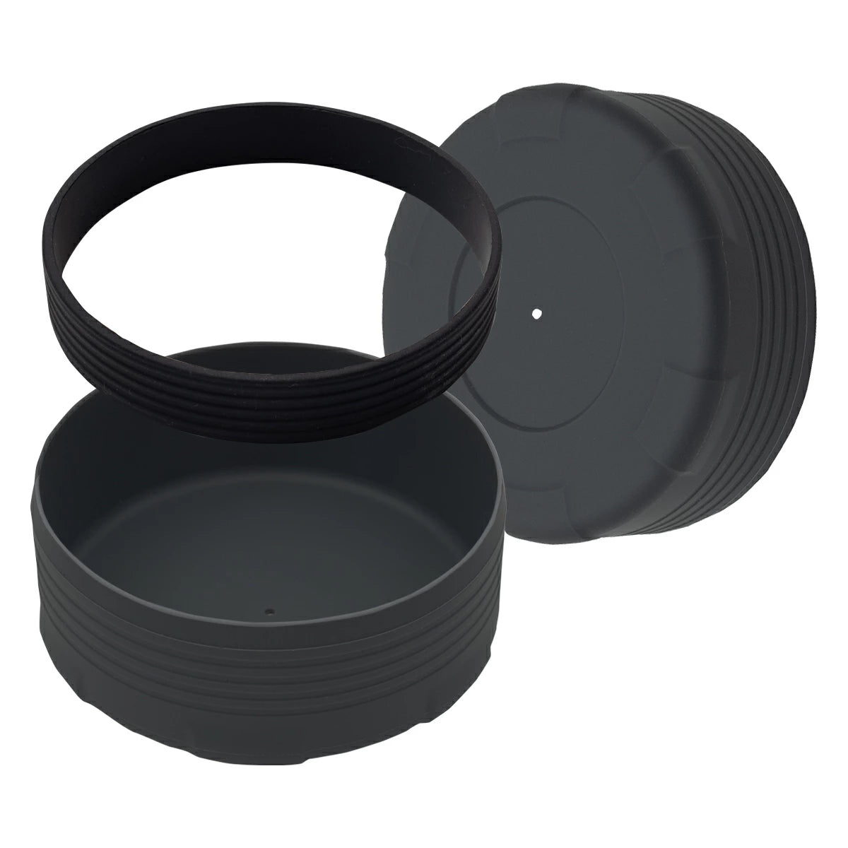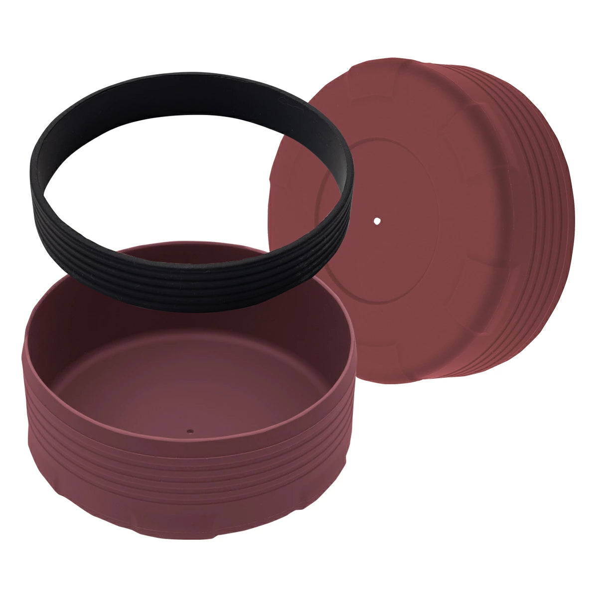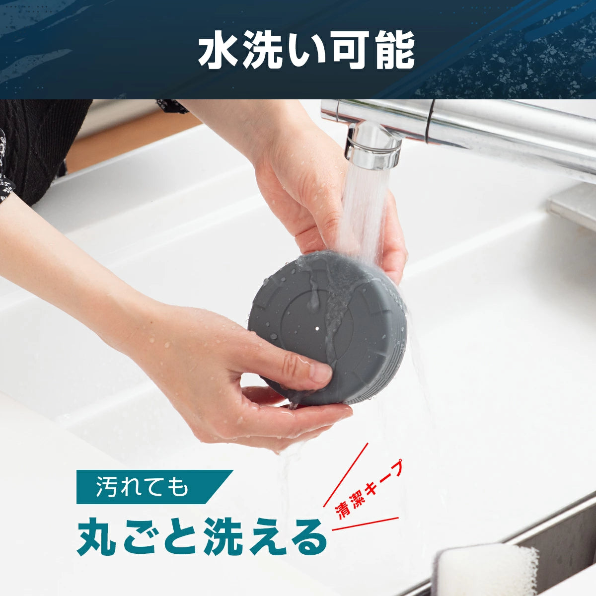 本製品の底面には装着の際、水筒ポーチと底ガードの間に入り込んだ空気を逃がす小さな空気穴があり、水筒ポーチにピッタリと取り付けが可能。また底ガードの側面には水筒ポーチから取り外す際に指が滑らないよう凹凸を付けています。さらにシリコーンゴム製なので日々の汚れも水でサッと丸洗いできます。