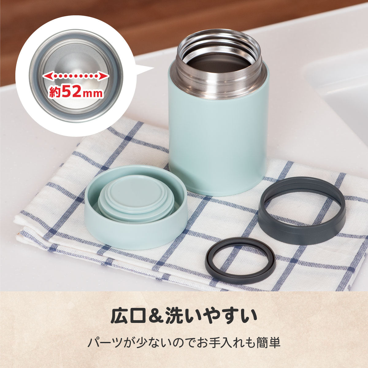 パッキン・飲み口カバーは取り外してすみずみまで洗える。