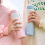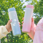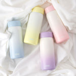 カラーはピンクホワイト、ラベンダーホワイト、イエローホワイト、ブルーホワイトの4色展開で、優しい色合いが溶け合うグラデーションが印象的なデザインです。毎日の水分補給が少し特別に感じられるような、柔らかく品のある仕上がりを目指しました。様々なスタイルに馴染みやすく、ファッションアイテムとして友人とのリンクコーデや、大切な方への贈り物としてもおすすめの一本です。