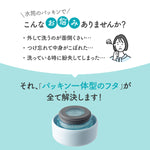 ふたキャップは抗菌素材を使用し、置いた時に接地面が小さい形状で衛生的。