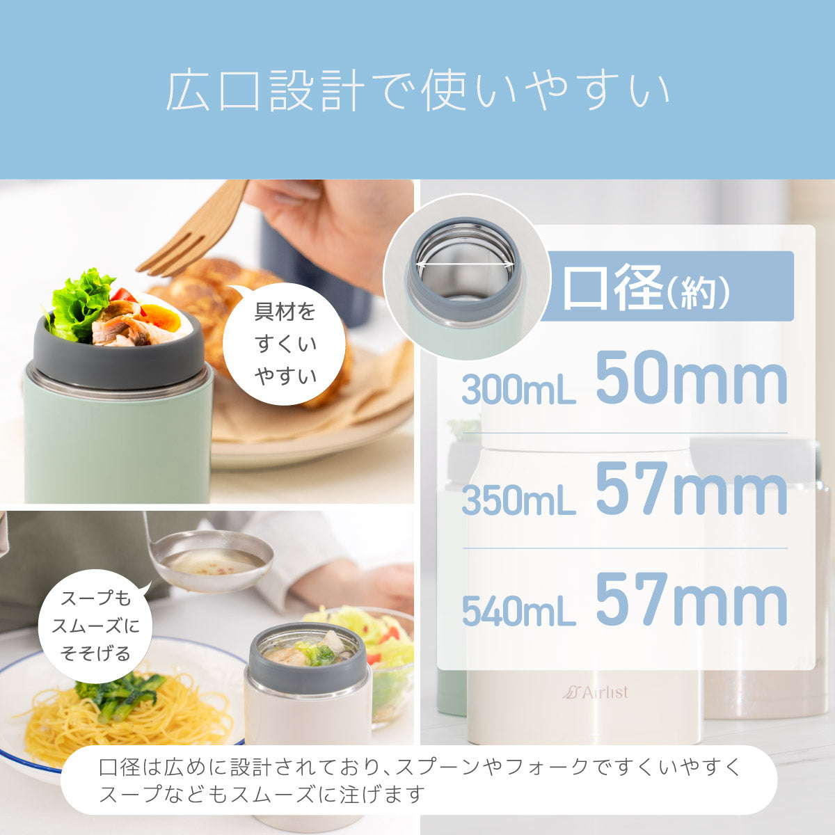 【NEW】エアリスト 超軽量フードポット スープジャー 300ml/350ml/540ml