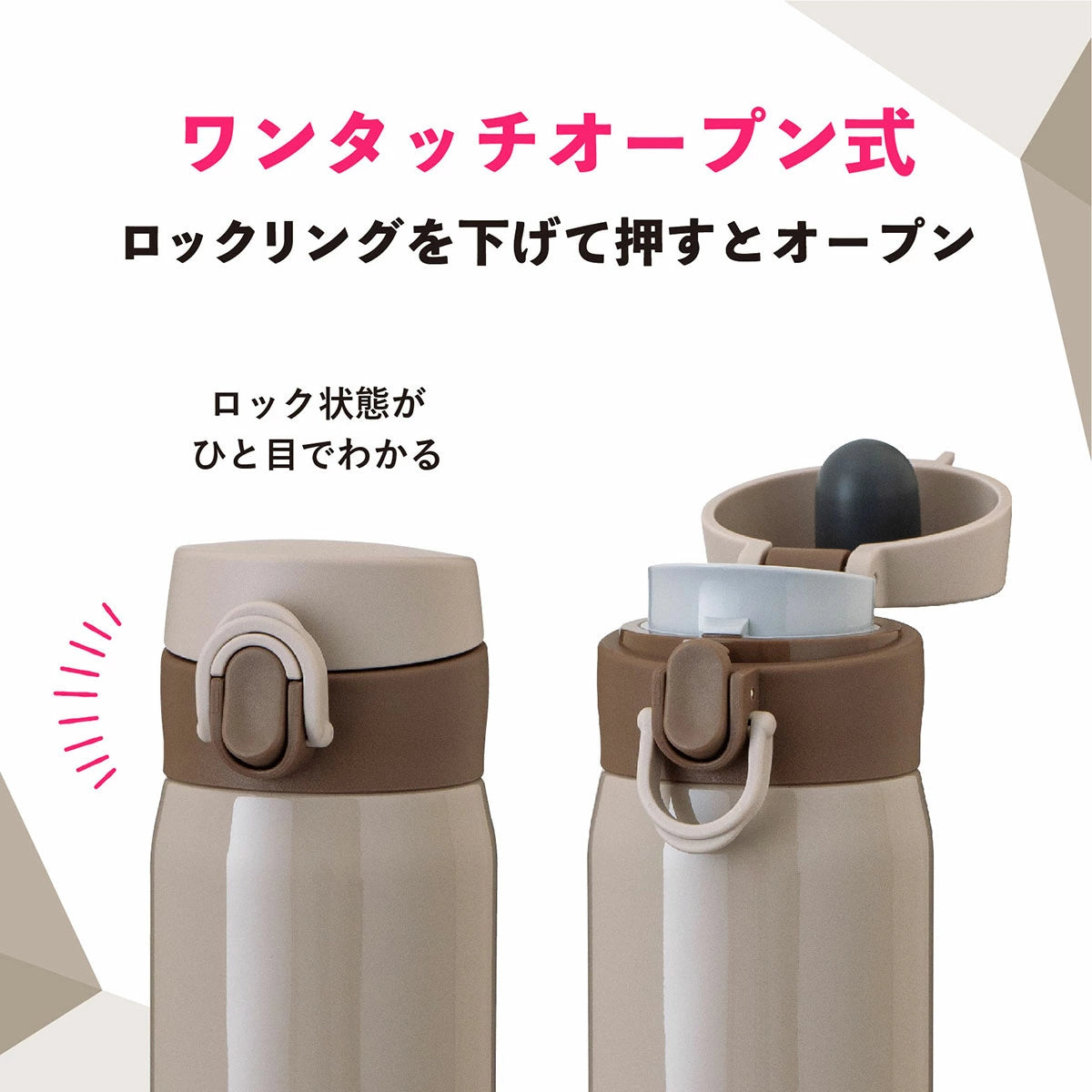 片手で開封可能ワンタッチオープン式のふたユニットに、ロック状態がひと目でわかるロックリングが付きました。カバンに入れて持ち運ぶ際も安心です。