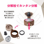 最小限のパーツ数と洗いやすさを追求しました。飲み口とパッキンを取り外して細部まで洗えるため、清潔に使い続けることができます。