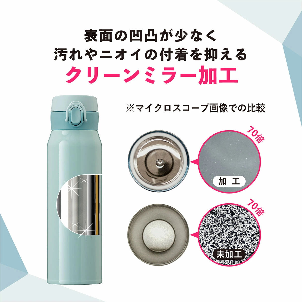 内びん表面の凹凸を少なくする加工を施すことで汚れやニオイの付着を抑えます。抗菌効果もあり安心。鏡面のようにツルツルなので、ゴシゴシ洗いが不要。毎日のお手入れが簡単です。