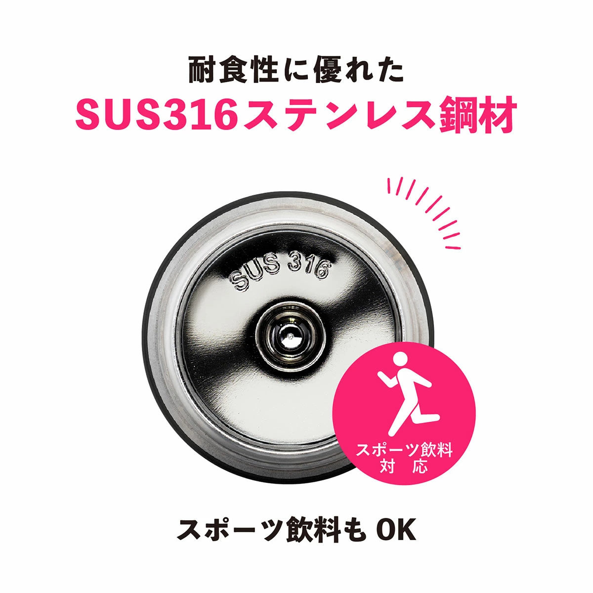 耐食性に優れたステンレス鋼材SUS316を使用しているため、スポーツ飲料もOK。