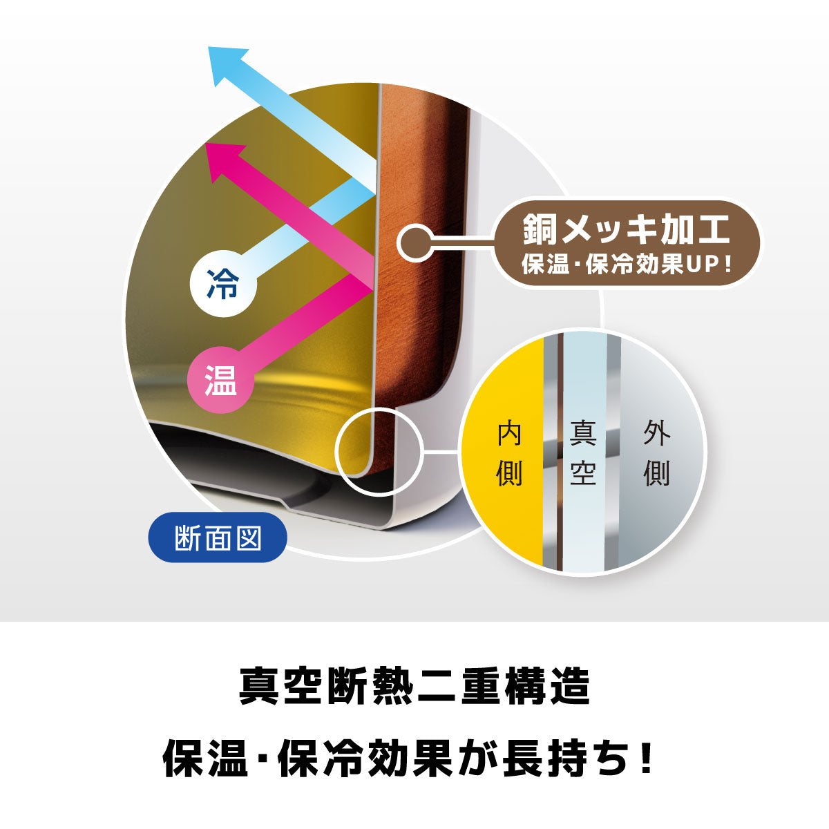 ・真空断熱構造+銅メッキ加工で保温保冷効果が長持ち