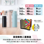 ※保温(保冷)効力とは、室温20℃±2℃において製品に熱湯(冷水)を口金の下端まで入れ、湯温が95℃±1℃(4℃±1℃)になったとき、キャップをして縦置きにした状態で6時間放置した場合におけるその湯(水)の温度です。