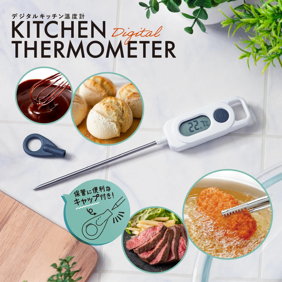 温度管理が仕上がりを左右する揚げ物や低温調理のお料理から、0.1℃単位の細かい温度調整が必要なチョコレートのテンパリング、パン作り、お菓子作りまで幅広く活躍してくれるキッチン温度計。料理・お菓子作りの失敗を減らし、美味しさを底上げしてくれる心強い味方です。