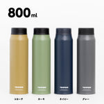 本製品の保温力は6時間後も83℃以上(800mlの場合)と非常に高く、普段使い用の水筒としては国内最強レベルの保温力を誇ります。飲み口の直径はホットドリンクの香りが立ちやすい42mmと広めに設計しているので、冬の夕方でも香りを楽しみながら淹れたて温度のホットドリンクを飲むことができます。また保冷力も6時間後も8℃以下(全サイズ共通)と優れており、内びんには塩分に強いステンレス鋼を採用しているため、夏のスポーツやアウトドアシーンでキンキンに冷えたスポーツドリンクを飲むこともできます。