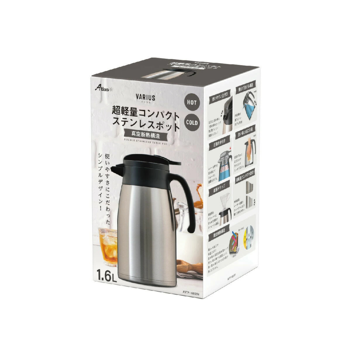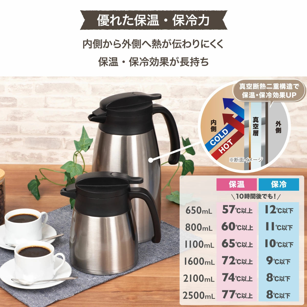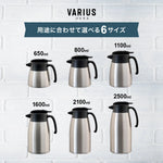 バリウス 超軽量コンパクト ステンレス卓上ポット シルバー 650ml/800ml/1.0L/1.6L/2.1L/2.5L
