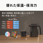 真空断熱二重構造で外気の影響を受けにくく、優れた保温・保冷機能を発揮。さらに、内びんの外側に銅メッキ加工を施し、保温・保冷効力を高めました。 温かい飲み物は温かいまま、冷たい飲み物はひんやり温度が長持ちするので、一年を通して活躍します。 また、保温時に電気を使わないため電気代がかからず、節電にも貢献。