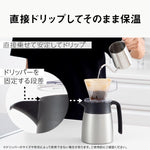 フタ上部の段差にドリッパーを直接乗せて、安定したドリップが可能です。移し替え不要でそのまま保温できるので、温度変化が少なく、飲み物をゆっくりと美味しい温度で楽しめます。 ※ドリッパーのサイズや形状によって使用できない場合があります。ご使用前にご確認ください。