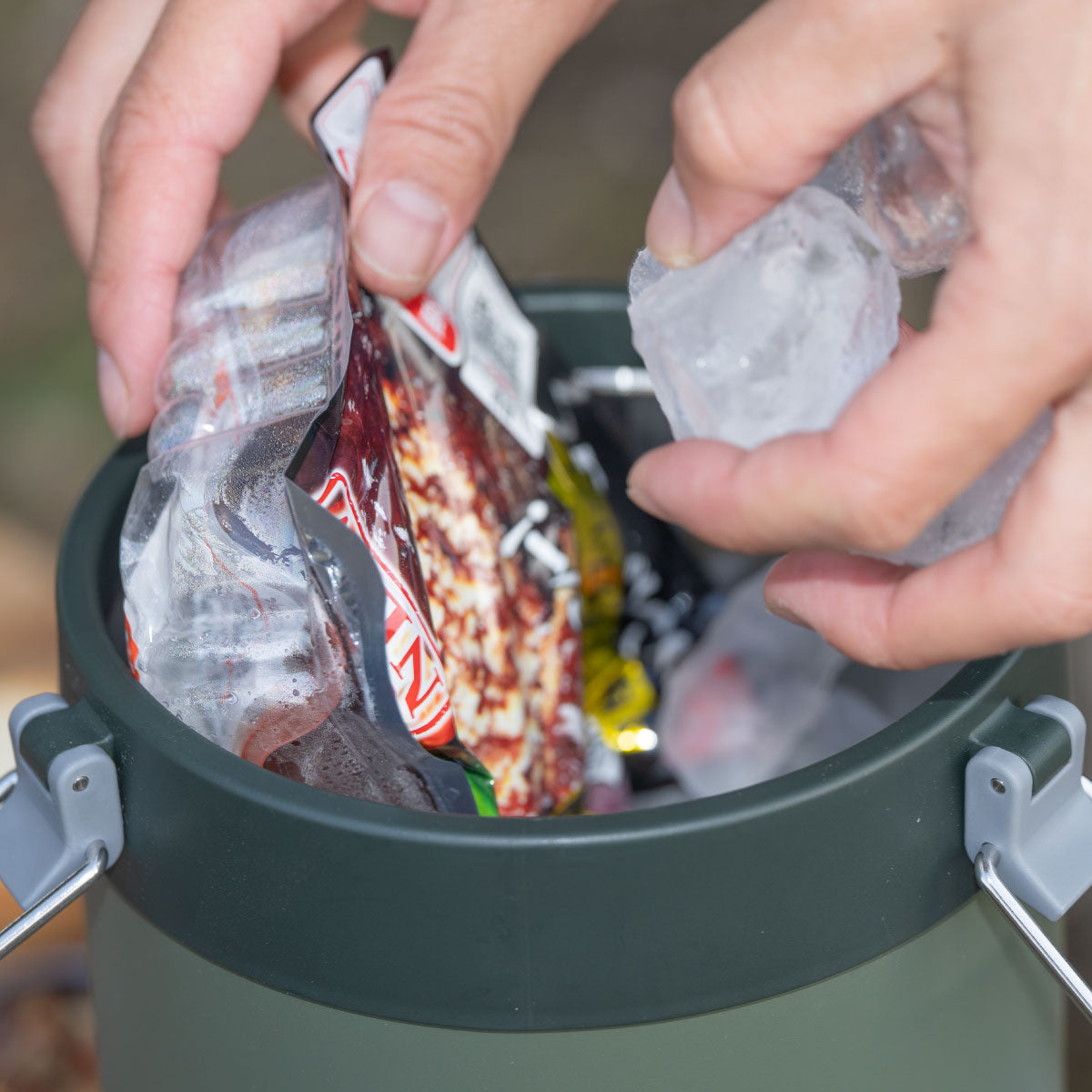 本製品は、コンパクトながら口径約15cmの広口設計で、大きな氷もたっぷり入る保冷専用のアイスコンテナです。市販の氷や飲み物、個包装食品を長時間冷たく保てるため、アイスペールとしてはもちろん、小型クーラーボックスとしても使用可能。キャンプやピクニックホームパーティーなど、アウトドアから日常まで幅広く活躍します。場所を取らない収納式ハンドルと、しっかり開閉できるロックリング式を備えた機能的な設計です。お手入れにおいては、フタパッキンや底カバーは取り外し可能でです。