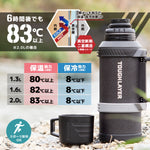 真空断熱構造により、6時間後で83℃以上(2.0Lの場合)を保つ高い保温効力を持たせ、災害時に貴重なお湯を長時間保つことが可能。